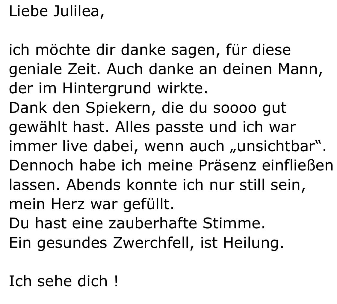 Nach einem tief berührenden ersten Mal im März 2025, kehrt Julilea mit ihrem Stimm Befreiungsprogramm zurück nach Zwickau. Das letztes Mal war restlos schnell ausgebucht. Nach Free your Voice geht es diesmal um die Heilkraft deiner Stimme. Es geht nicht darum, schön zu singen. Sondern darum, Wahrheit und die eigene Essenz frei und stark über Deine eigene Stimme zu verkörpern.