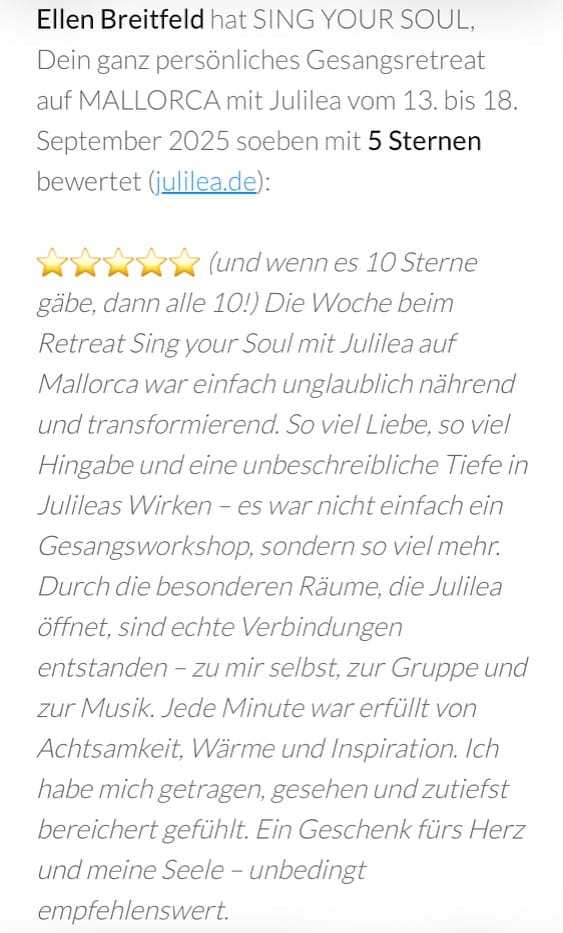 Julilea – Sängerin, Stimmmentorin -und Therapeutin, Klangheilerin Herzensmensch